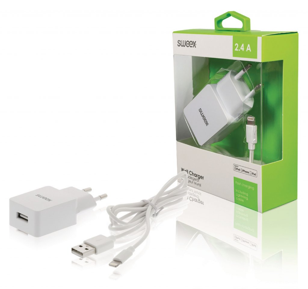 Väggladdare, 1 utgång, 2.4 A, IPHONE / APPLE, Vit, (Sweex)
