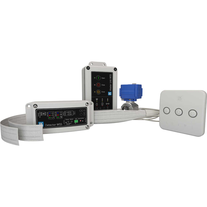 LK Standardpaket WSS innehåller en huvudenhet, en motorventil G20, en manöverpanel och en läckagedetektor med två sensorer. Motorventilen monteras på inkommande vatten efter vattenmätaren och styrs av huvudenheten. Huvudenheten spänningsmatas med en 12V nätadapter. Med manöverpanelen kan man stänga av vattnet direkt eller med fördröjning och slå på det igen. Läckagedetektorn har två sensorer men kan byggas på med flera. Detekterar sensorn vatten skickar den en signal till huvudenheten som stänger av vattnet. Det går även att komplettera systemet med fler läckagedetektorer om man vill övervaka flera platser. Manöverpanelen och läckagedetektorn kommunicerar trådlöst eller med kabel, är batteridrivna eller kan ha extern spänningsmatning. Totalt kan max 16 manöverpaneler eller läckagedetektorer anslutas till huvudenheten.